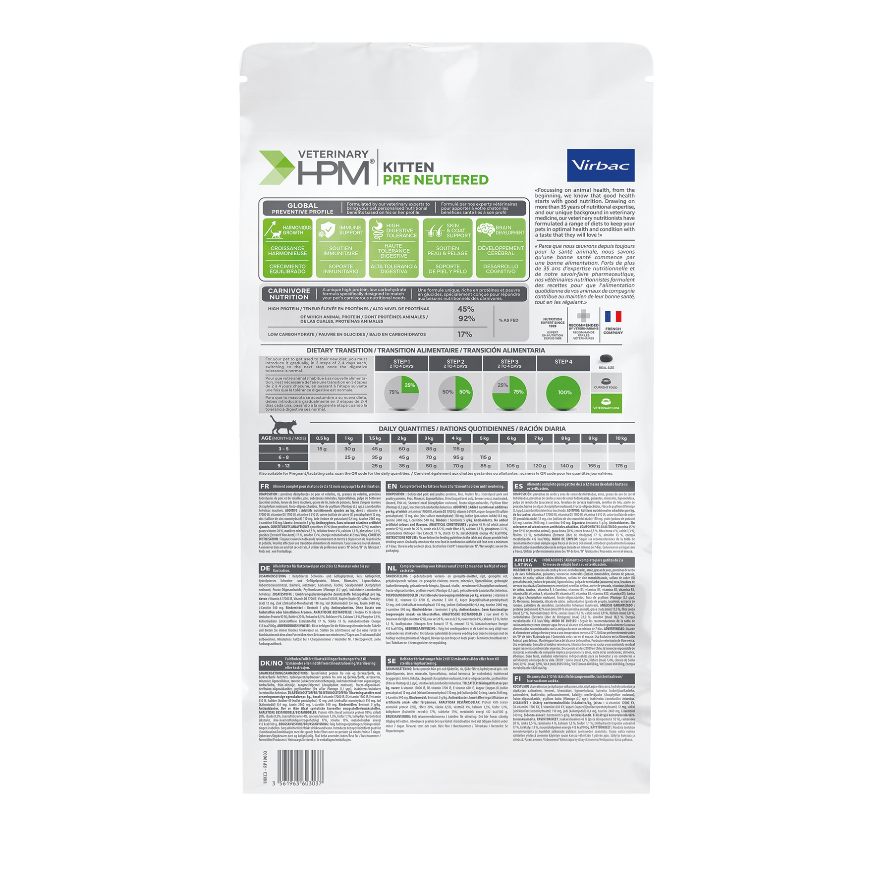 *Fórmula adaptada a su fisiología natural*: Con más del 35% de proteínas animales y menos del 25% de carbohidratos, esta dieta respeta la biología ancestral del gato, ayudándolo a mantenerse activo, sano y en forma.